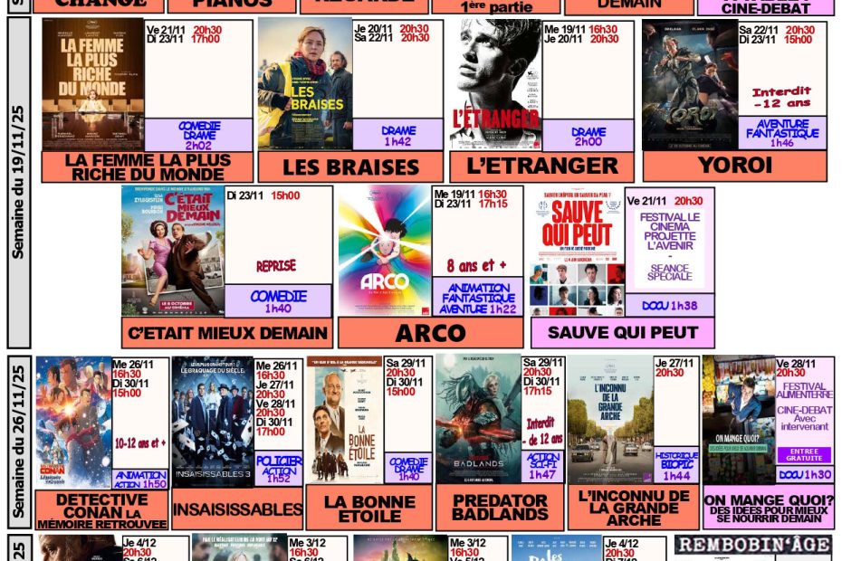 Novembre 20254 novembre 2025Retrouvez du 12 Novembre 2025 au 14 Décembre 2025 notre sélection de films: