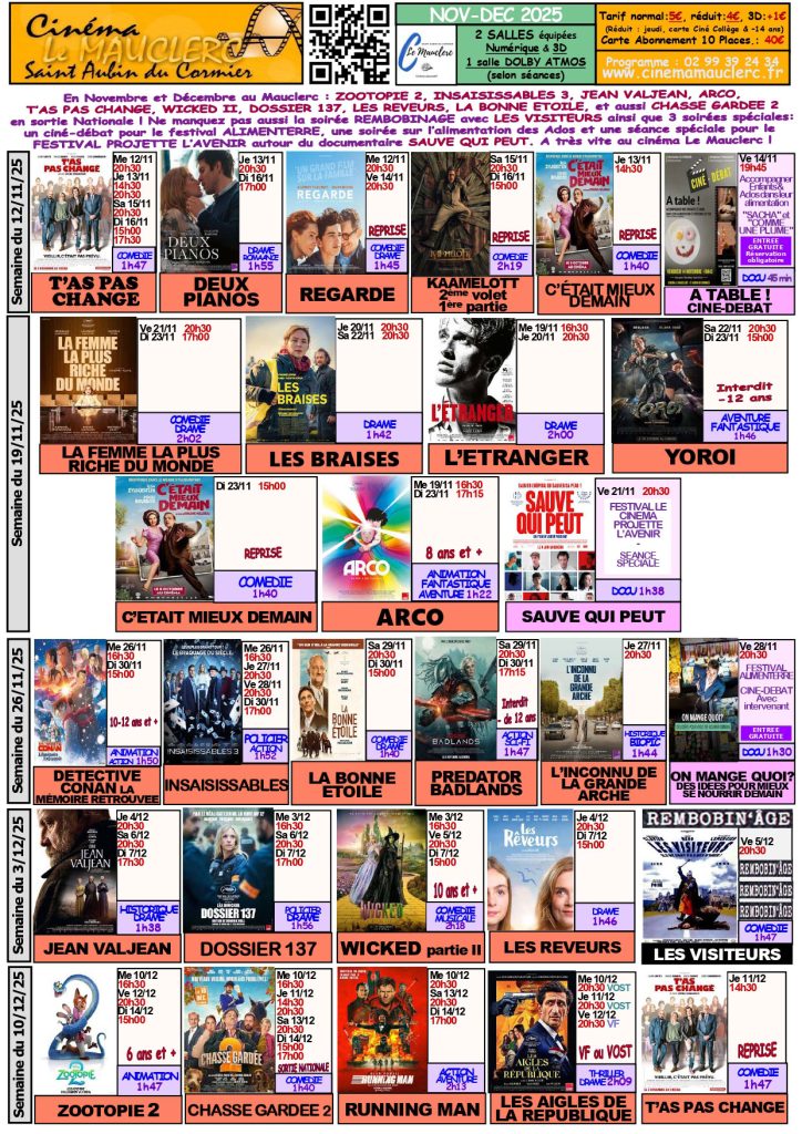 Retrouvez du 12 Novembre 2025 au 14 Décembre 2025 notre sélection de films: